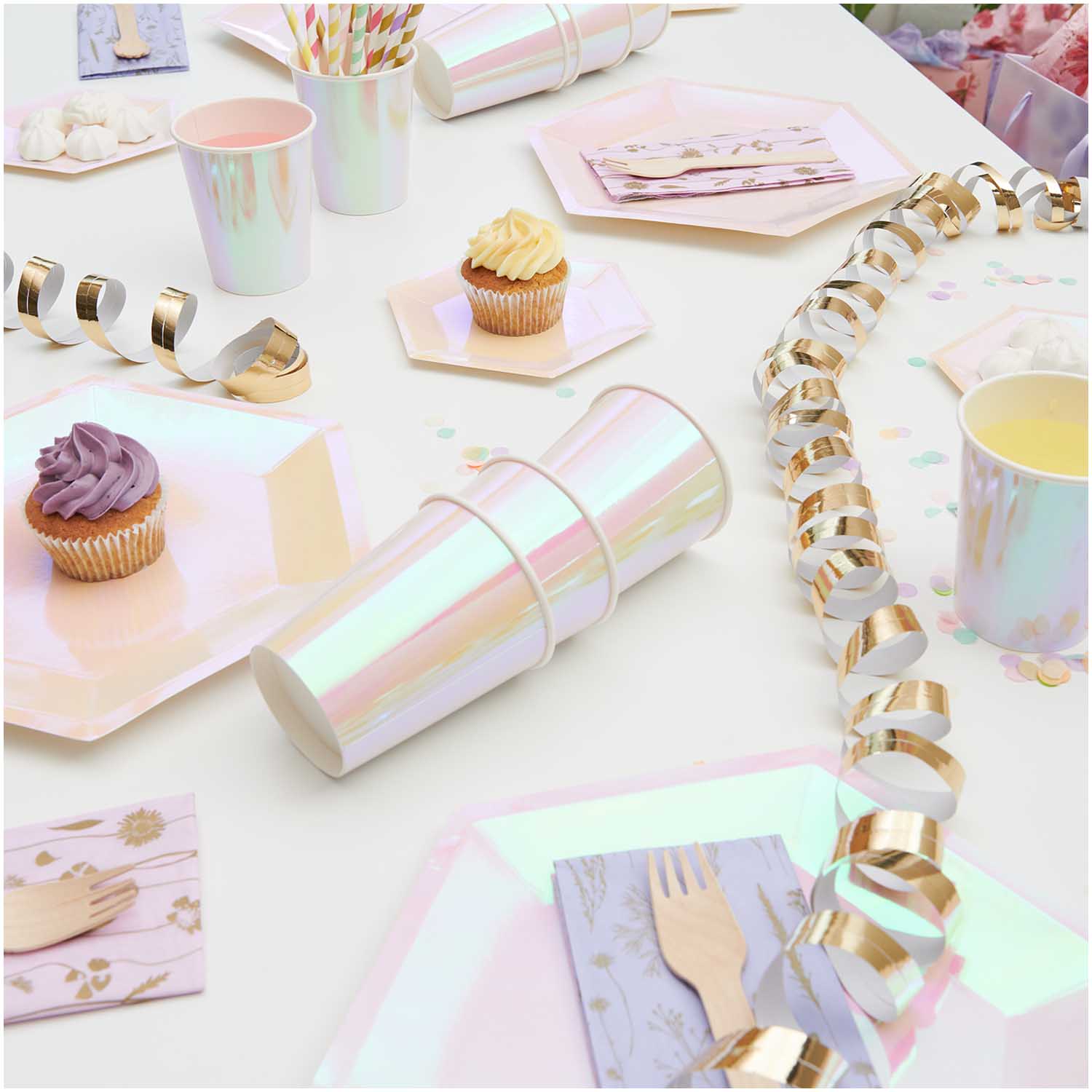Diese Pappteller sind aufgrund ihrer besonderen Form und der schimmernden Veredlung ein absoluter Hingucker.