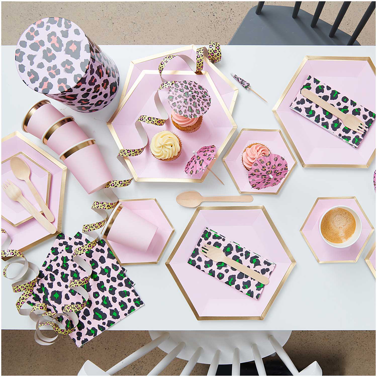 10 sechseckige Pappteller in einem zarten rosa, mit schimmerndem goldenen Rand. Passend dazu gibt es auch die Pappbecher in unserem Shop - beides eignet sich super für eine Prinzessinnen Party.